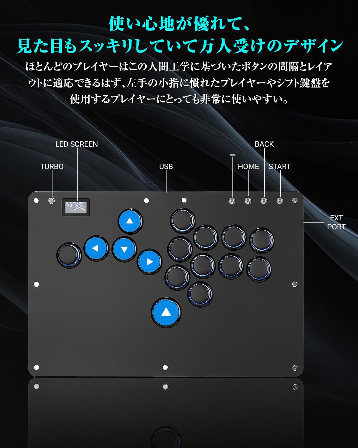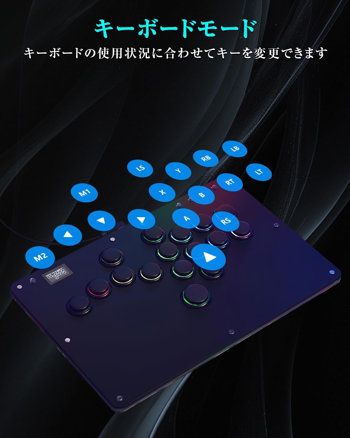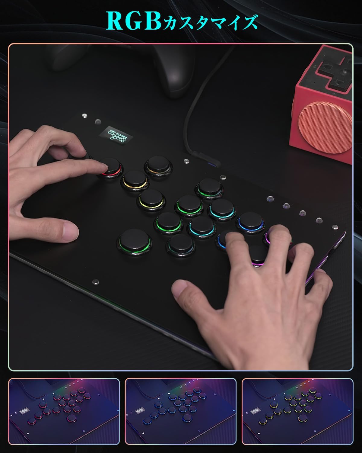1.【格ゲー向けのレバーレスアケコンR16ブラック】 市販品と比べてボタンのレイアウトが変わった。業界でも珍しくM2ボタンが左の小指に移動、小指に慣れている方には、M2ボタンの機能を自分好みにカスタマイズ可能、超便利。ボタン枠の追加でしっかりした感触、操作性が向上しボタンが引っかからず外れにくくなり、適度なサイズで運指がしやすい。 Kailh製の高透明ロープロファイルスイッチを採用し、操作感が勿論、LEDライトも明るくて、視覚的にも楽しめます。天板広め、極薄の厚さ、手頃な本体サイズを備え、膝置き、机置き両方でも安定、持ち運びにも超便利。